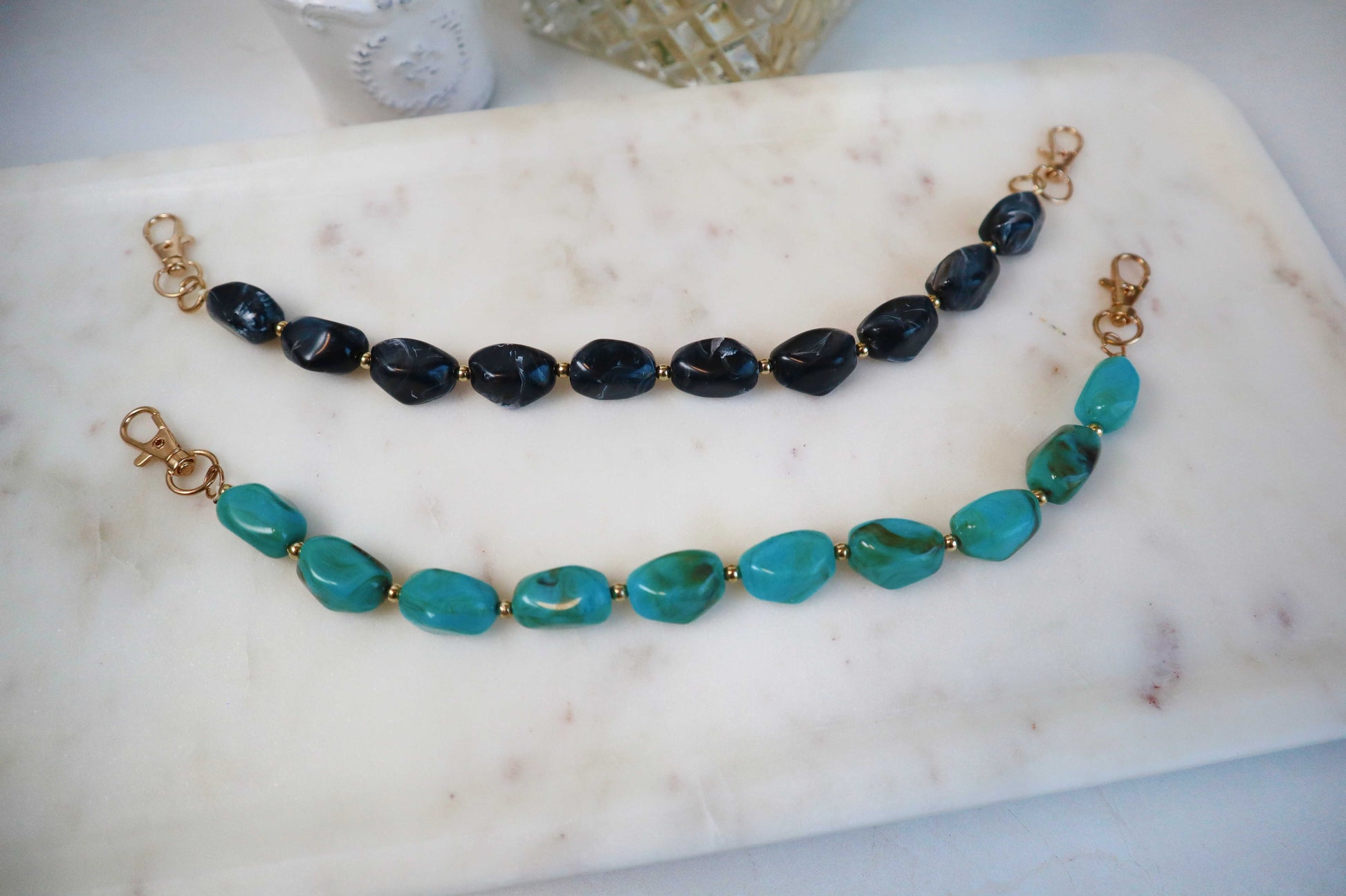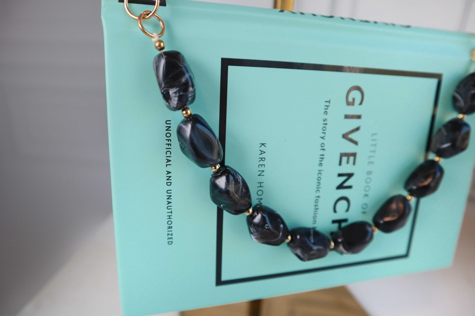 - Chunky faux stone links for that edgy-chic look